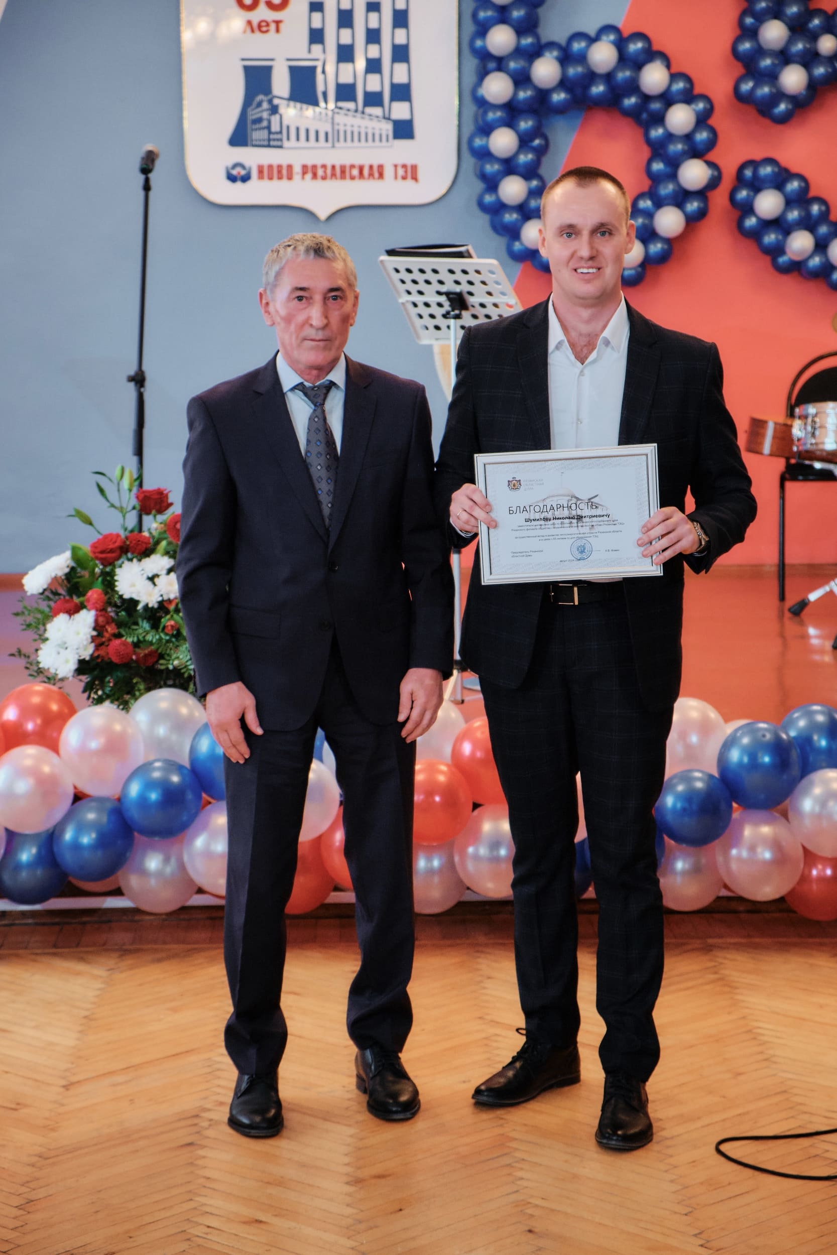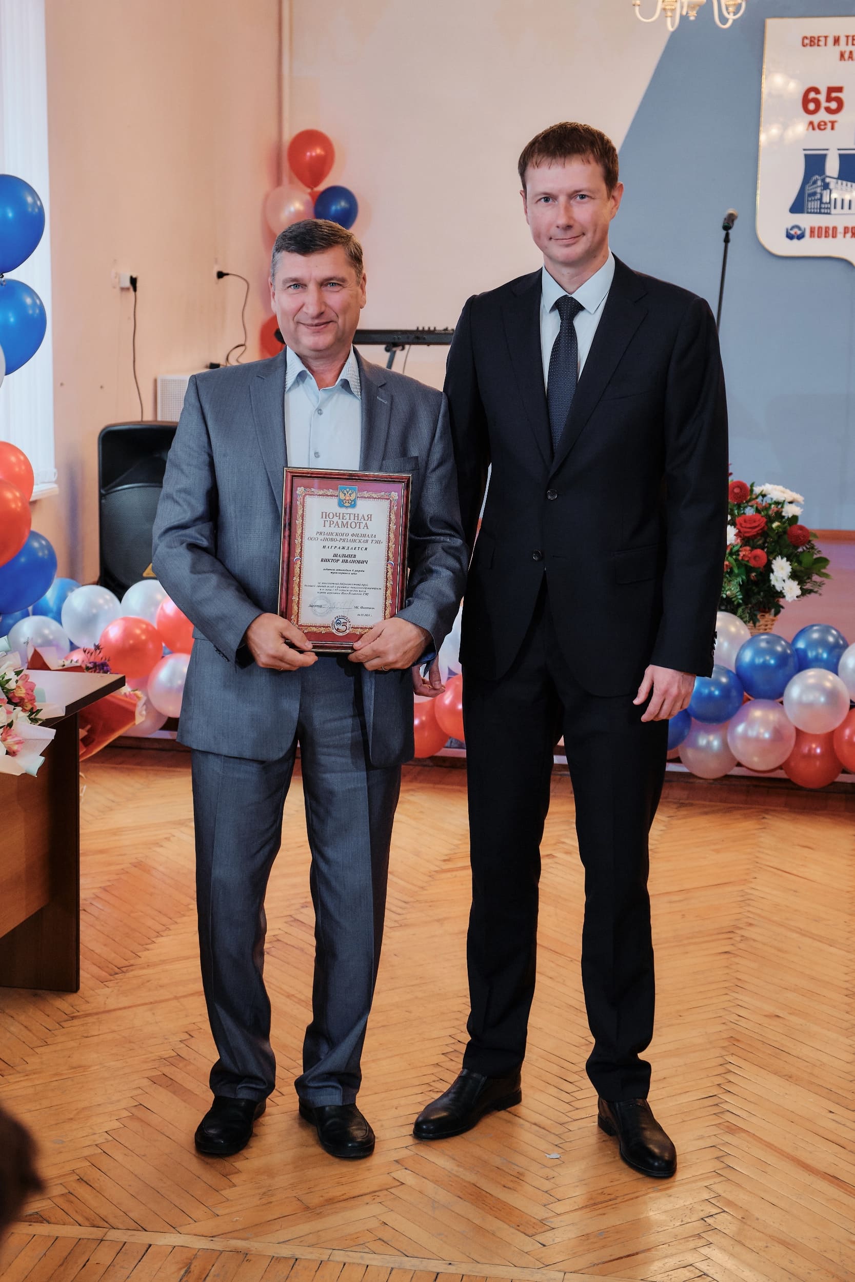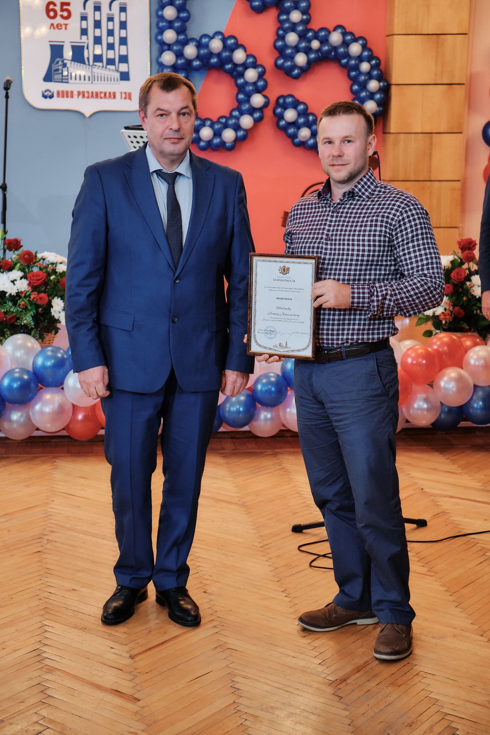 От имени администрации Рязани Виталий Артёмов объявил благодарность специалисту по ультразвуковому контролю лаборатории металлов Юрию Киселёву и начальнику смены котлотурбинного цеха Денису Шибанову.