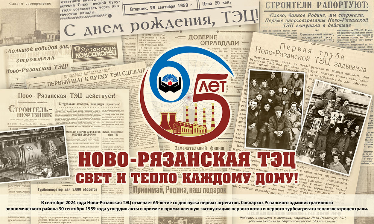 В сентябре 2024 года крупнейшая теплоэлектроцентраль г. Рязани - Ново-Рязанская ТЭЦ –отмечает 65–летие со дня пуска первого энергоблока.