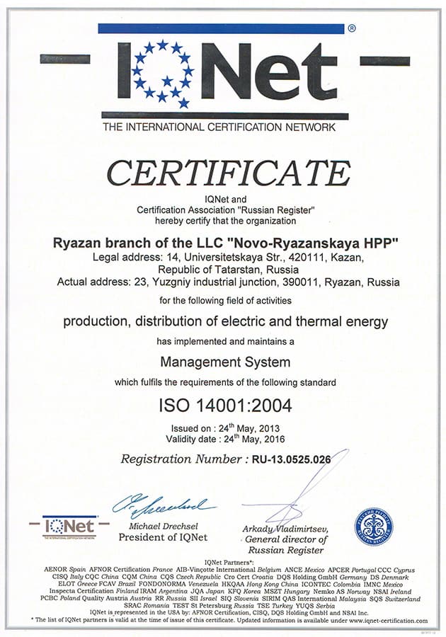 На Ново-Рязанской ТЭЦ в мае завершилась процедура ресертификации системы экологического менеджмента на соответствие ее международному стандарту ISO 14001. По итогам аудиторской проверки сертификат соответствия был продлен до 24 мая 2016 года. Ново-Рязанская ТЭЦ — это единственное генерирующее предприятие в Рязанской области, природоохранная деятельность которого сертифицирована на соответствие международному стандарту.
