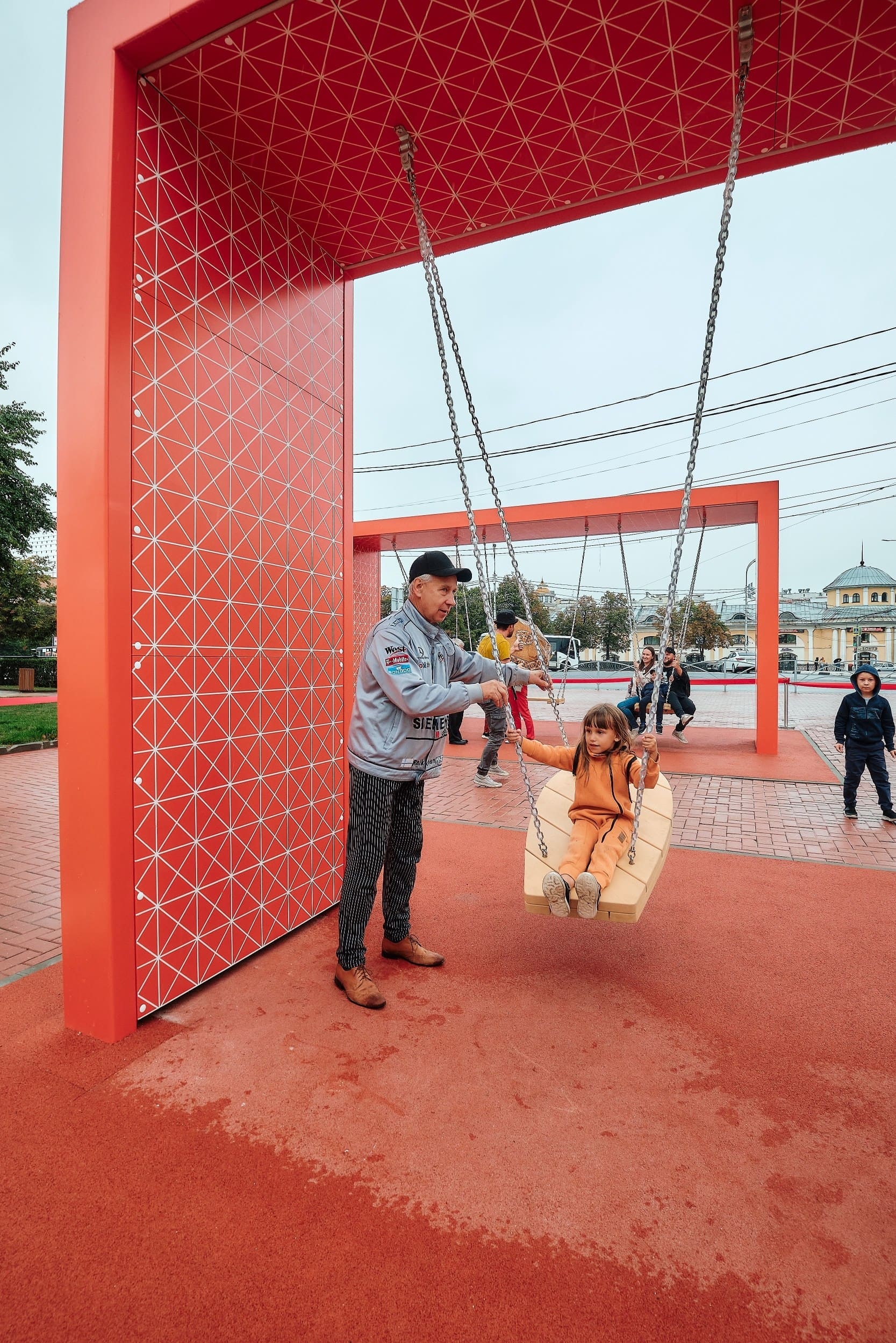 Качели предназначены как для детей, так и для взрослых. Установка конструкций стала подарком горожанам от Ново-Рязанской ТЭЦ — станции, обеспечивающей теплом две трети рязанских жителей.