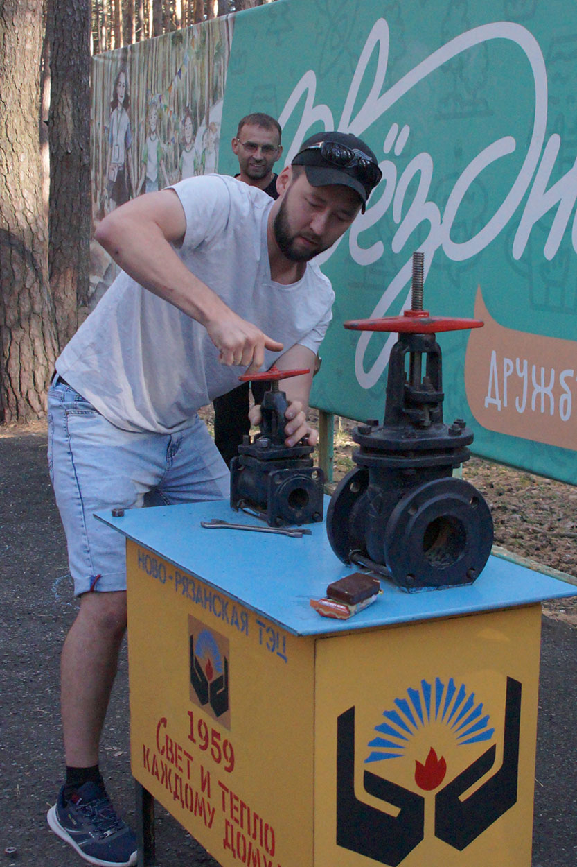 Одним из самых интересных развлечений был традиционный для Ново-Рязанский ТЭЦ конкурс по разборке трубопроводной задвижки. В нем принял участие не один десяток человек. Тем, кто справился с заданием за 25 секунд или меньше, полагался приз, но уложиться в “норматив” оказалось не так-то просто! В итоге лучший результат (19,5 секунды) показал работник цеха ремонта тепломеханического оборудования, третьим стал начальник этого цеха, а второе место осталось за представителем котлотурбинного цеха.