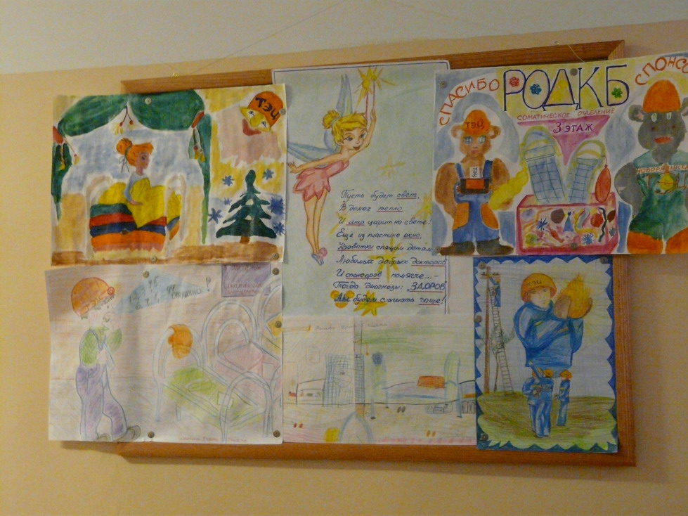 В знак признательности главный врач больницы передала руководству Ново-Рязанской ТЭЦ благодарственное письмо, а дети к приезду «шефов» подготовили рисунки, на которых энергетики — главные действующие лица. Рисунки с творчеством детей размещены на корпоративном сайте Ново-Рязанской ТЭЦ.